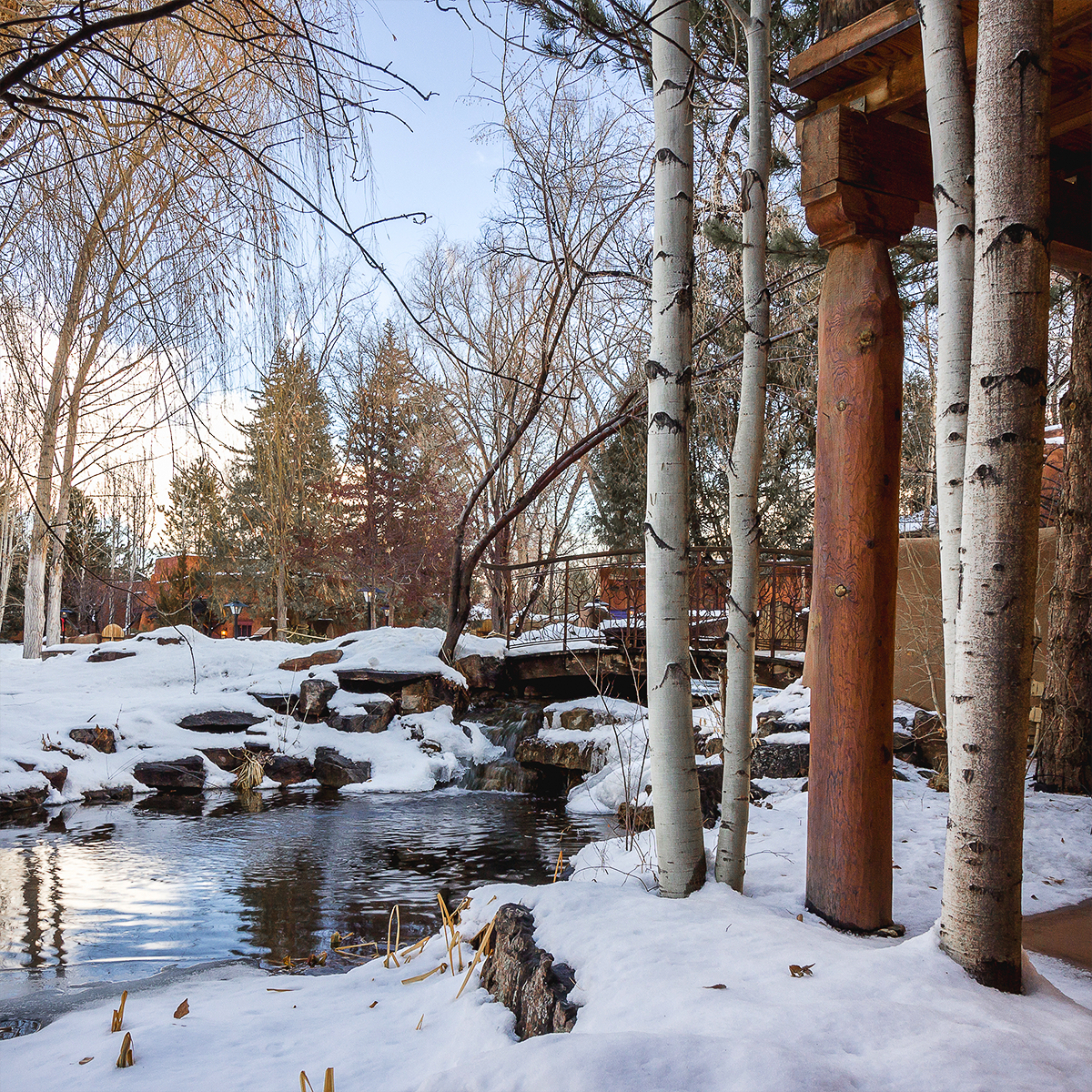 El Monte Sagrado, situated in the mountains of Northern New Mexico, offers a serene setting surrounded by waterfalls, ponds, and towering cottonwood trees. The perfectly manicured grounds make this mountain retreat an oasis only a few blocks away from the town of Taos’s historic plaza and 20 miles away from world class-skiing at Taos Ski Valley.